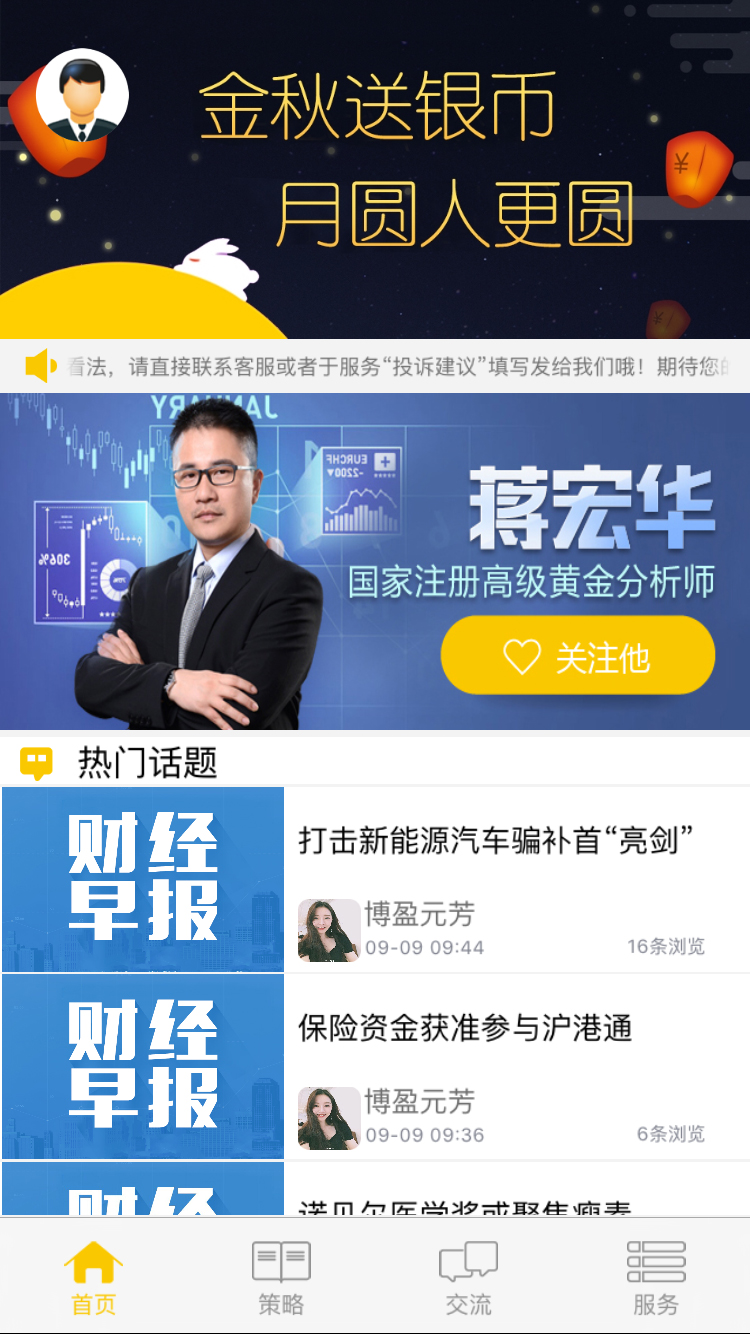 3. 今日话题:实时的行情话题,官方评论,用户畅所欲言,相互沟通。