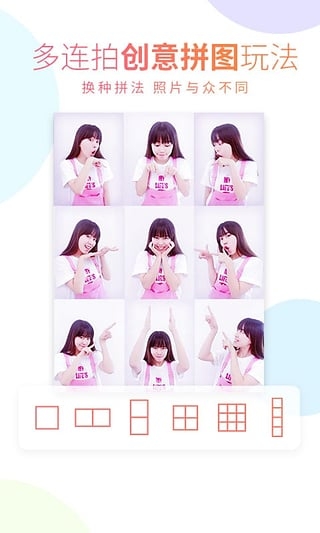 万能相机中,美图公司特别推出“拼图相机”功能,适用于人像拍摄。该功能可以进行1至9张照片连拍,无论是单人自拍,还是多人互动拍照,用户可尽情发挥创意,感受拼图的乐趣。