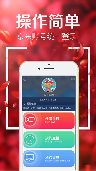1.视频趋势:顺应视频直播潮流,京东首款移动直播app发版,满足部分网红达人直播需求;2.操作简单:使用京东账号统一登录,与您商城账号一一打通,同步购物车,推送商品so easy!