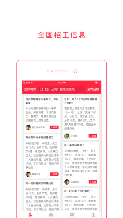 用劳务圈可以发布供人信息,发布招工信息,与供需方在线即时沟通。