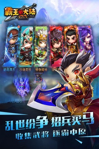 《霸王的大陆》是一款全新的萌逗三国合体战斗手游,搞怪逗趣的人物对白、新颖合体技能组合、丰富的武将搭配、多样的装备系统,独特的的关卡模式,让你尽情享受一统江山的快感!主公,粮草已准备充足,就等你来这里释放天性了!《霸王的大陆》凭借着推陈出新的剧情设定,一改往日的肃杀之气,将无厘头演绎到了极致!不仅如此,游戏还推翻了传统动作卡牌手游粗糙的对战设计,融入创新的合体玩法,为带给玩家带来了更多的游戏趣味和视觉体验。“幽默”“萌逗”“酷炫”这三大要素贯穿其中,绝对让你眼前一亮。