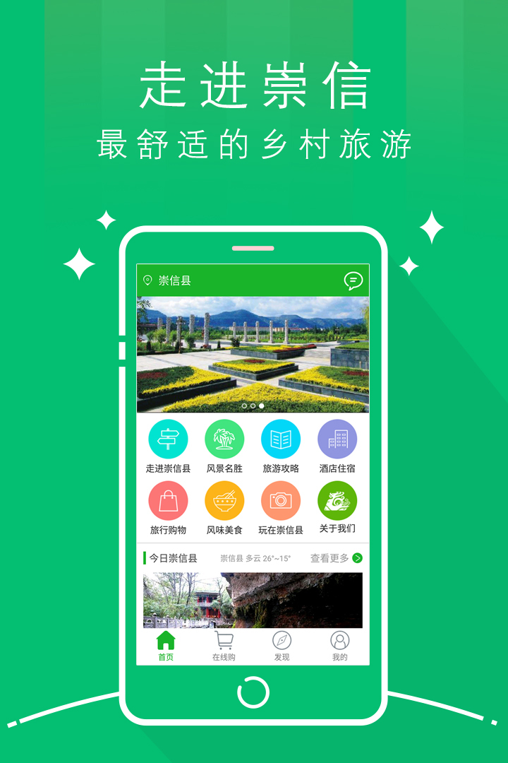 【政府授权】旅游局授权认证的崇信旅游生活应用,真实可靠;【旅行导览】集成导航数据,定位导览,专业语音导游,让你的旅行告别走马观花;
