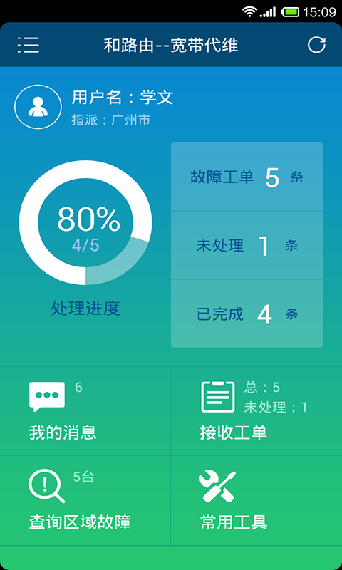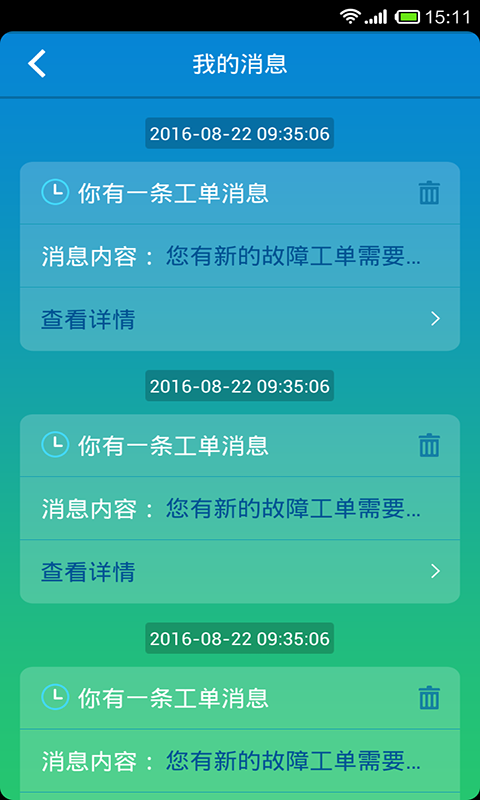 和路由运维app记录了运维工作人员的工单处理进度和工单状态,运维人员可以通过和路由运维app查看所在区域或时间内的工单消息列表和设备详情信息。