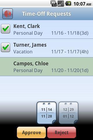注意:启用该应用你的雇主必须Kronos劳动力中心®;为Kronos的移动配置的服务器软件。联系您的系统管理员的详细信息。更有生产力的劳动力流动?应用提高了劳动管理的效率,使管理人员和员工更容易被立即投入和完成简单的管理任务。现在,管理者和员工在他们如何相互作用与任何时候,任何地方的灵活性,即时连接到Kronos劳动力中心®;套房。劳动力流动?经理允许管理者使用他们的移动设备来解决异常,因为它们发生,以及使快速响应员工的要求。管理者有直接的洞察到他们需要管理的员工存在的信息,如批准工卡和发放时间要求。劳动力流动?员工提供员工能够快速、轻松地复习资料如表和工卡。他们可以要求请假,批准他们的考勤卡打卡,并从现场。