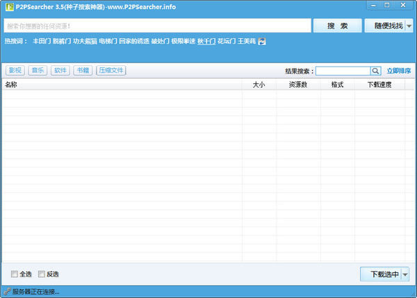 1、打开p2psearcher3.5绿色版,在搜索栏内可搜索你想要的关键词。