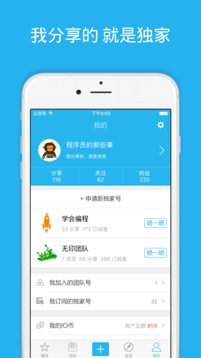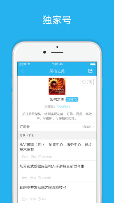通过独家号,可在开发者头条上分享链接、吸引粉丝、互动关系。依托开发者头条的用户基数和良好口碑,能够为入驻者创造更大价值。