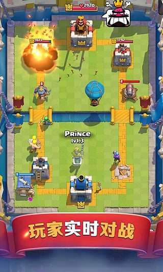 《部落冲突:皇室战争》又名《皇室战争》,是一款由Supercell开发的卡牌游戏。比于《部落冲突》利用UGC生产出无数种变化多端的阵型,强调玩家间异步攻守的乐趣,《部落冲突:皇室战争》更在乎实时卡牌间的对战,更强调竞技的意味。游戏的主要玩法是对线推塔,玩家可以通过卡牌召唤怪物和法术,攻击对方城堡,直到一方推到另一方的主城堡被毁,便获得胜利,该游戏以策略战争为主题,通过不断的开启宝箱来获取卡片的方式来增强自己的战斗力,进而与成千上万的玩家进行匹配战斗。随着奖杯的不断提升,开启不同场地的竞技场。【游戏特点】