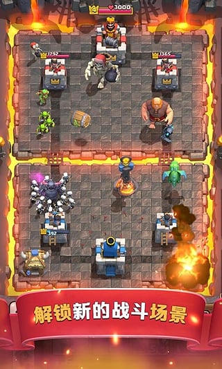 延续创新,新征程正式开启!《皇室战争》是一款竞技趣味十足的卡牌对战游戏,上手简单。它保留了“部落冲突”原有的经典策略元素,并大胆创新将其与现下流行的卡牌形式相结合,让玩家在碎片化时间中也能体验到竞技的乐趣,短短三分钟即可亲历一场蕴含丰富策略、紧张而刺激的攻防战。