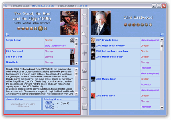 2.你可以个性化所有数据。你可以改变所有你所了解(从'卓越的'到'糟糕的')的电影和人物。你可以谈论在你所拥有的收藏当中包含电影的技术细节。你可以保持对借出电影的跟踪。你可以管理你的希望列表。
