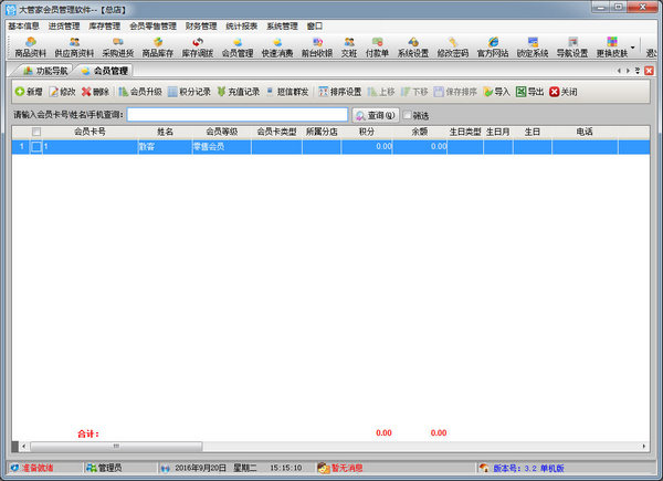 大管家会员管理软件是一款非常专业的会员管理软件,软件集会员积分、消费、收银等功能为一体,支持多种结账方式,拥有功能强大的各类统计报表,让您对商品进、销、存及利润等财务状况了如指掌。【软件特点】