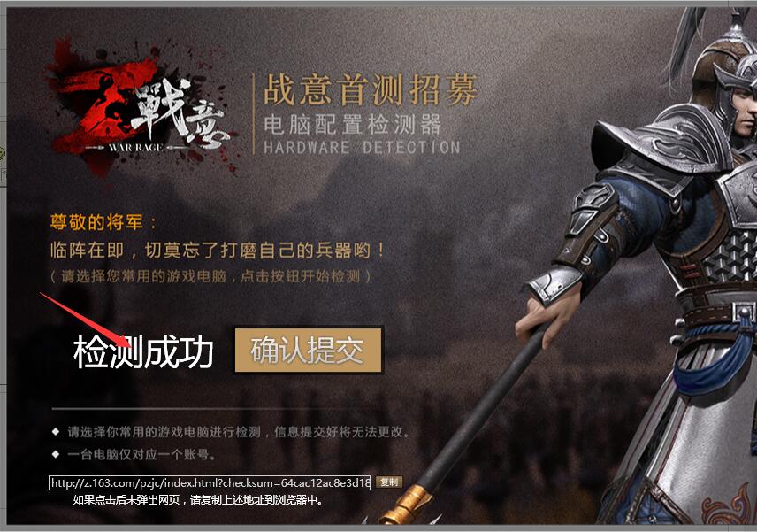 3、之后可以点击【确认提交】按钮,进入《战意》首测的预约测试链接进行预约