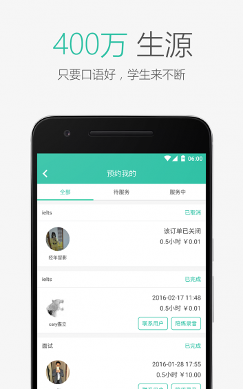 价格实惠:呼叫中国达人只需0.5元/分钟,呼叫老外达人只需1.5元/分钟。聊天交友:通过Enter,你可以结识到各行各业的口语达人,感受到最真实的语言练习环境。