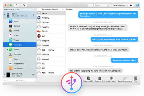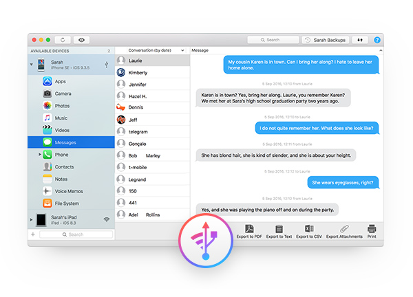 从 PC 或 Mac 读取您的 iPhone 信息。您可以用 iMazing 浏览和保存所有信息、彩信和 iMessage 对话。它们会通过熟悉的界面展现出来。便于查找,易于重新查看。
