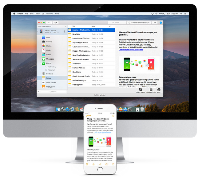 在 Mac 或 PC 上浏览 iOS 备忘录。获取您的会议记录和购物清单,并从 iPhone 或 iPad 传输至电脑。支持:浏览和导出所有备忘录、将备忘录导出为文本或 PDF 文件、单独保存附件。