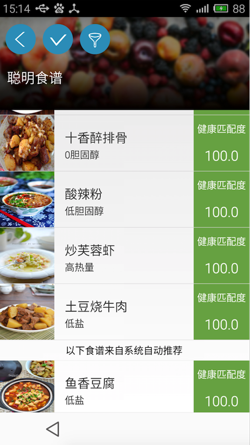 说起健康来,那么酷镜的最大亮点就是保证了每一道菜的营养成分数据的可靠性和真实性,当您想要减肥时,不妨多看看卡路里相对较低的食物,当您想要增加钙质时,不妨多看看钙含量高一些的食物,心中有数才能吃的健康,当您难以抉择想要吃什么的时候,聪明食谱这个功能会让您有一个更好的选择,比如,当你的冰箱里只有土豆和茄子的时候,告诉酷镜,酷镜会为你生成以你冰箱里食材和与您身体匹配度高的美味菜肴,这样是不是又多了很多种选择?当然,功能不仅仅是这些,我们还可以选择一些禁忌的食材,这样酷镜的聪明食谱引擎会为您过滤掉拥有这些食材的食物,是不是很方便呢?