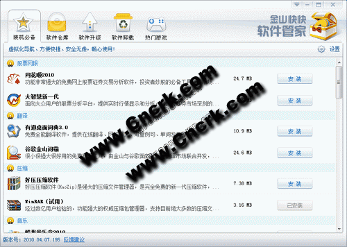 金山快快软件管家 V1.0 Beta2 简体中文官方安装版 金山软件管家产品是由金山互联网安全团队和金山最新成立的快快事业部联合打造的。除了保留毒霸已有的云安全技术, 推荐列表的所有软件, 均经过金山毒霸的云查杀扫描, 保证安全干净. 这个产品最大的亮点是使用了最新的软件流和虚拟化技术,一点就用,无需安装