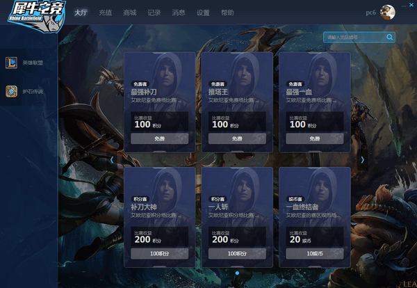 5、平台中赛事分为三个类型:免费场、积分场、娱币场。不同的赛事类型参赛条件不同、比赛奖励不同。