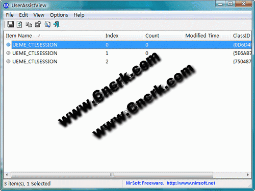 UserAssistView V1.01 英文绿色免费版 这个工具解密并显示储存在注册表中的 HKEY_CURRENT_USER\Software\Microsoft\Windows\CurrentVersion\Explorer\UserAssist 所有的信息 .UserAssist 键主要包含你经常打开的EXE文件信息和链接。你能导出列表,存成 text/html/xml/csv 文件,你也可以删除不需要的项目。