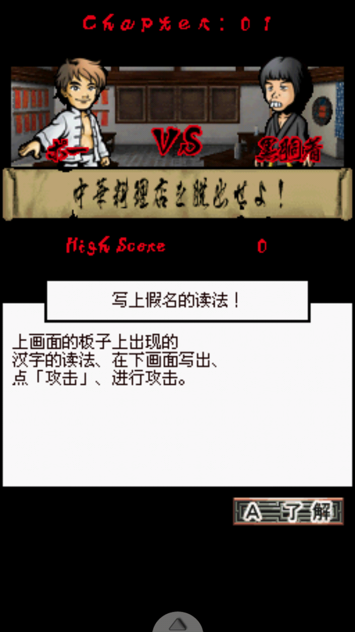 游戏以模仿功夫这一电影的方式,通过描写主人公历经磨难的关卡,展露中国文化的战斗故事!游戏中更是通过任务对汉字问题解答正确的方式来进行并且通关~~通过反义词、同义词、部首、偏旁等各种形式,以及根据材料写成汉字等。只有在玩家回答正确而且能快速的解答问题之后,主人公才会对外界进行强而有力的攻击!这款游戏的亮点就在于无论是穷屌丝还有帅男神都可以完美驾驭,还可以拉上自己女神一起玩呦~~或者在聚会的时候一大群人通过游戏来玩真心话大冒险也是不错的选择!