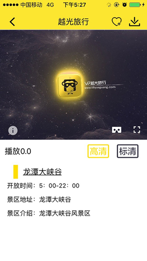 VR越光旅行app是一款基于安卓手机平台以VR体验为特色的VR旅游应用APP,VR越光旅行app随时随地为旅客提供全国各地旅游景区的门票、景点特色、附近酒店、周边美食等,可以未到景区先身临其境的观赏360°景区全景,方便人们更好更快的做出合适的选择。【软件特点】