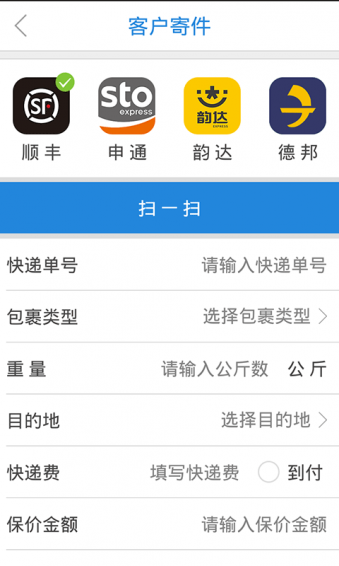 1.客户寄件2.快递取件