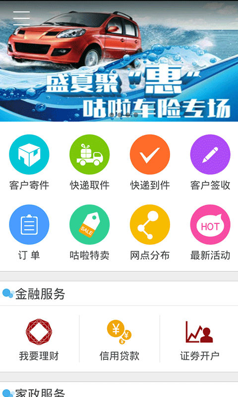 1.社区快递-——咕啦合作站点落户于每个社区周边,为小区居民带来便捷又迅速的包裹收代发。现已合作顺丰速递,圆通,申通,百世汇通,韵达等国内知名快递公司。2.社区金融——丰富的金融理财产品:弘信宝(p2p理财),太平洋保险(车险),证券开户(华福、东莞证券),信用贷款,房易贷,车贷等。