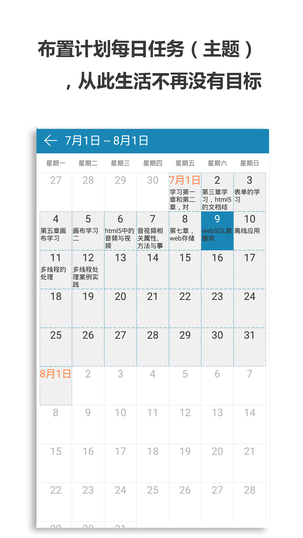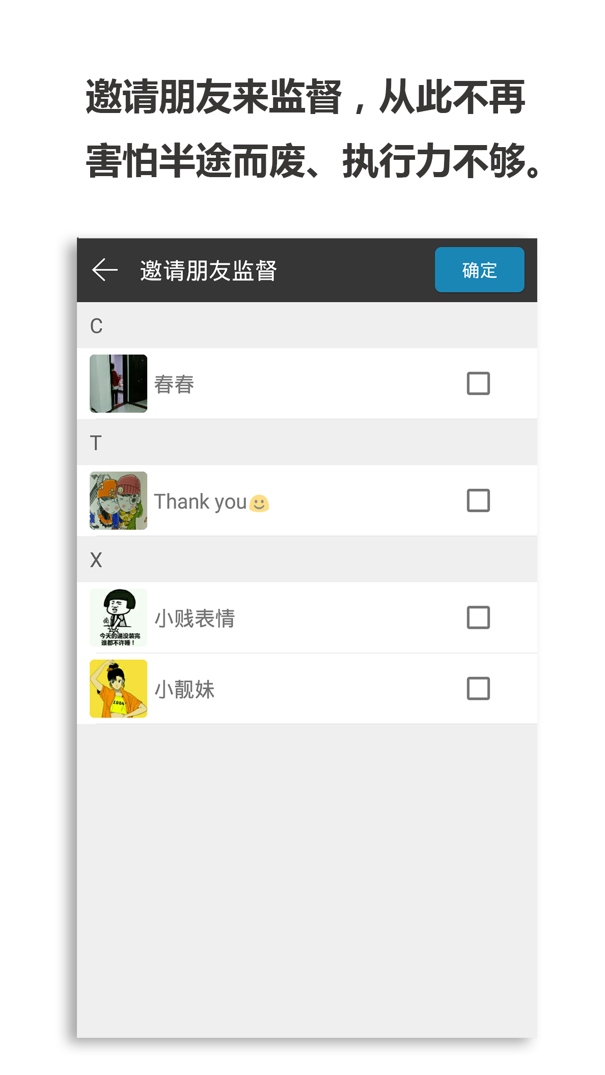 1、可以创建计划,监督和被人监督计划2、为计划中的每一天定好主题或者任务,好友(如果有的话)会及时为你提醒。