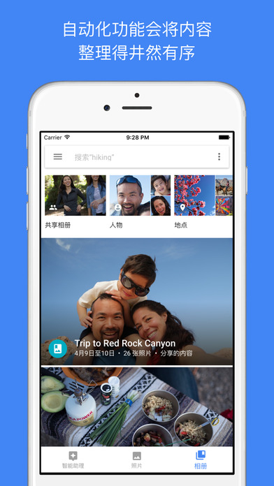 谷歌为“照片”这件简单的事加入了技术细节。GooglePhotos结合了谷歌的识别技术,能自动识别照片中的人或不同事件,可以自动为用户添加便签,而无需手动。【软件特色】