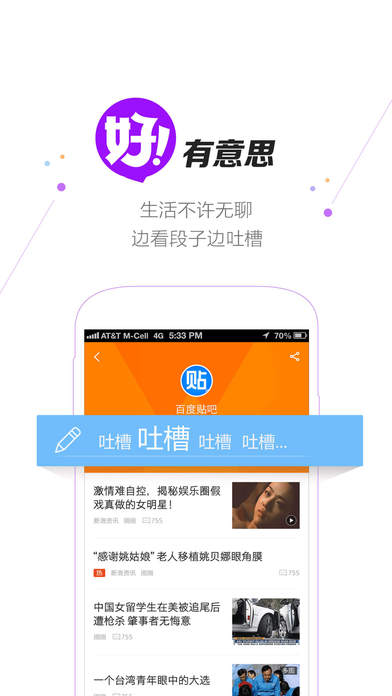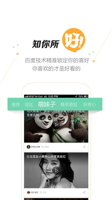 百度好看app是由百度全新打造的一款为用户个性化推荐优质资讯内容的手机app,百度好看app由百度和旗下hao123联合打造,网尽好咨询,聚合百度全系内容,无需搜索一网打尽,百度好看app知你所好,可以精确锁定你的喜好,你喜欢的才是最好看的。【软件特点】
