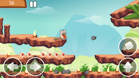 这款adrogdesigns推出的《史前时代》讲述的就是粹文明时代的实物获取之旅,当然爱老婆是人类优良传统,无论在哪个时代都是这样。游戏背景设定在原始社会时代,我们的主角要为了他愤怒且饥饿的妻子外出寻找实物,游戏的操作比较简单,屏幕下方设有控制角色左右移动和跳跃的虚拟按钮,右边还有投石按钮,游戏场景中充满着各种危险,比如不可触碰的尖刺、不能直接跳过的危险平台、危险生物等。玩家需要避开这些危险或者通过场景中一些特别的道具跨过不可直接跳过的障碍,比如游戏中会有可被推动的石块,将石块推到危险平台上可以当成跳板。在寻找实物的过程中危机重重,玩家需要根据具体场景,对角色进行合理的操作使其避开危险并尽可能多的找到实物,可谓是一款既考验操作,又考验智商的游戏。