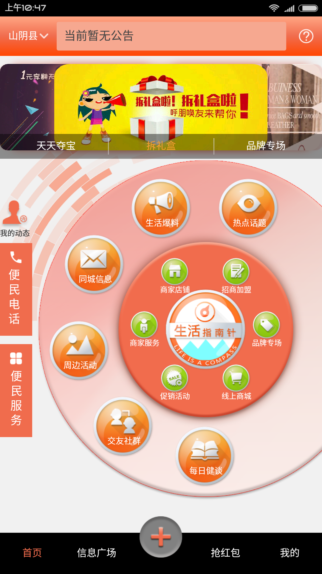 生活指南针打造电商平台+媒体+行业精英的三方协同新模式;为客户提供线上、线下的全方位服务,面向三四线城市提供“简单,可依赖”的信息获取方式、解决身边的实际问题,免费的信息发布,多元化的网络智能服务。公司办公面积120平方米,现有技术团队2个,技术人员共计18人。同时不断加强和充实公司的技术实力,改进并完善系统升级服务及市场推广等各方面的软、硬件设施和服务条件。生活指南针组建以经济发展较快的三四线城市为平台,以期能为全国用户提供更加快捷的服务,进一步深化和拓展公司的业务空间。