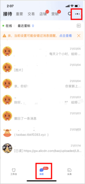 1、在消息页面内,点击右上角的扩展图标(如下图所示)