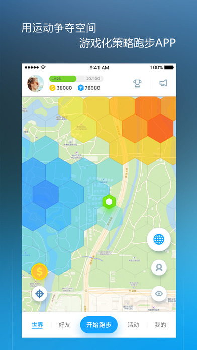 这是一款游戏化策略跑步APP,基于真实世界构筑出一个跑者空间,
