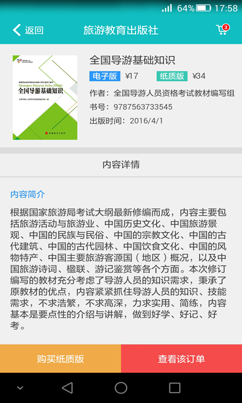 1、学习平台给用户提供导游资格考试的题目和视频资料以及相关导游词、带团技巧、导游知识和外语学习;2、书城给客户提供相关电子书和纸质书的购买方式及电子书的手机阅读;