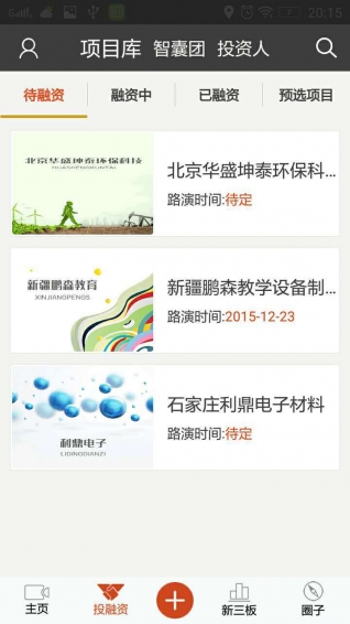 2、我要融资 快速发布项目路演申请,入驻平台融资环境