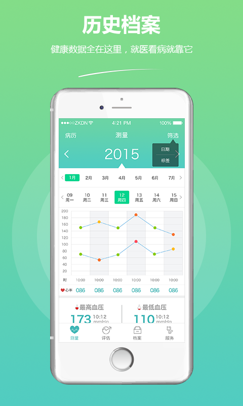 查看血压测量历史数据,统计分析历史曲线,发现血压异常情况