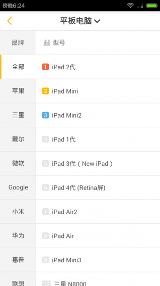 往下一拉就是引导区,第一个默认的就是手机,可以点品牌,看上图有一栏,咱们日常用的手机绝大部分直接找到,个别小众手机可以在搜索框里搜!