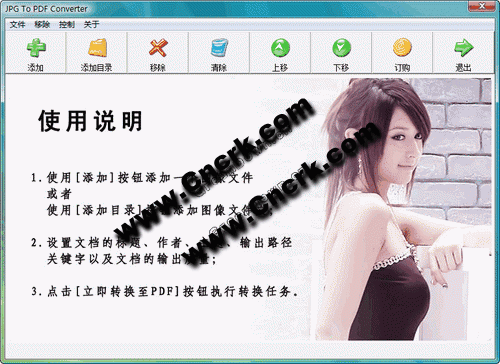 JPG To PDF Converter 是一个可将不同格式的多幅图片快速转为单一PDF文件的实用小工具,支持的图片类型包括JPG, GIF, BMP, TIF,PNG 和 PSD,转换速度快.转换后自动打开存储路径,方便您的查看