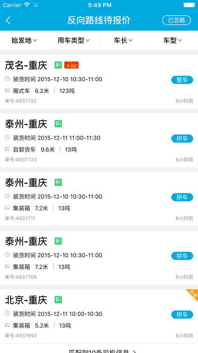 福佑经纪人app使用福佑卡车应用填写需要运输的货物信息,就可以马上在福佑经纪人app上接单啦!