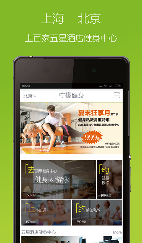 柠檬健身,成立于2014年,是通过聚焦运动&健康专家、达人,为用户提供运动 & 健康潮流资讯以及相关专业服务的O2O交易的垂直移动平台,中国目前一家专注五星级酒店高品质服务的健身App。【软件特点】