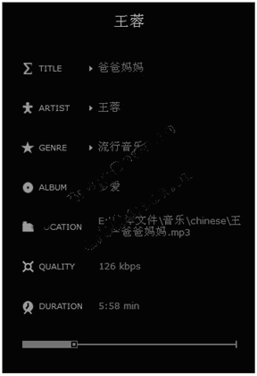 BeoPlayer V5.04 汉化绿色免费版 Beoplayer是出自业界著名丹麦音响大厂Bang & Olufsen之手。Beoplayer是一套好有特色的播放音乐软件,启动程序后,选择搜寻计算机内的数码音乐,Beoplayer会列出详细清单,方便你可以随时播放音乐。BeoPlayer以黑白为主要的配色,滑鼠游标移动到萤幕左右会滑出控制面板,支持音乐 CD、MP3、WMA 等主要音乐格式