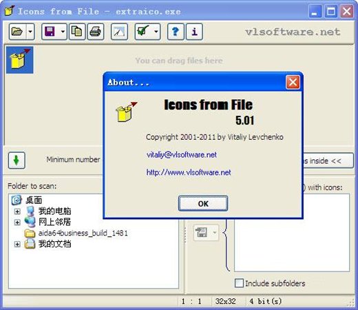 Icons from File是一款小巧的ico图标提取工具,可以从文件提取图标并保存为ICO、BMP、JPG、GIF、PNG或,EMF等格式.而且这款ico图标提取工具除了从单个文件提取图标之外,还可以一次扫描出文件夹中所有包含图标的文件哦!并将它们全部提取出来。