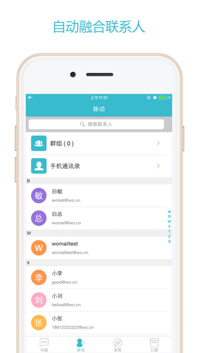 a. 手机通讯录,邮件往来联系人,精准融合;