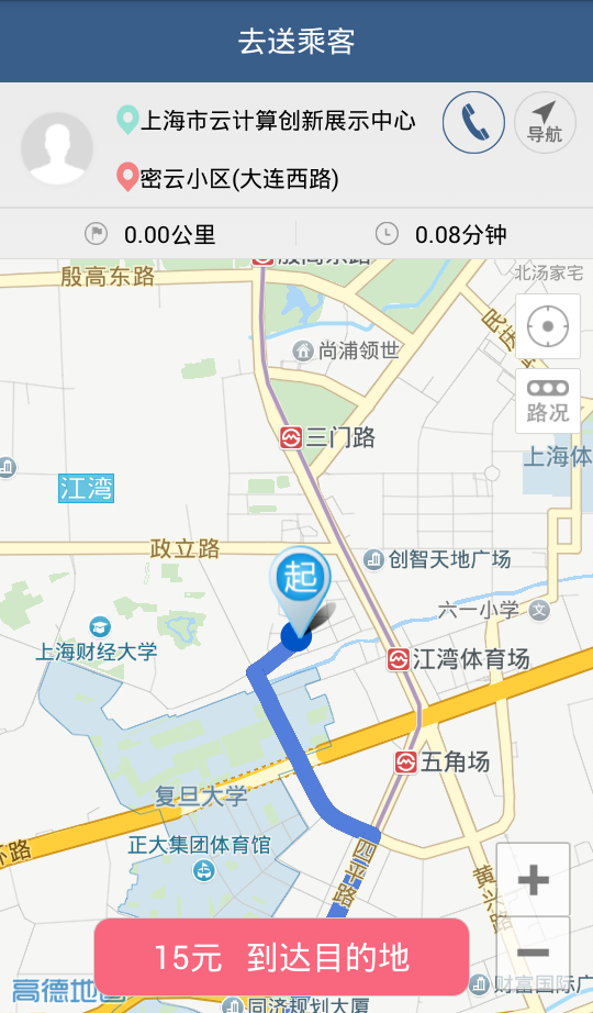 4、订单执行中,自动导航,还可以查看附近的路况,帮助您选择最优的行驶路线