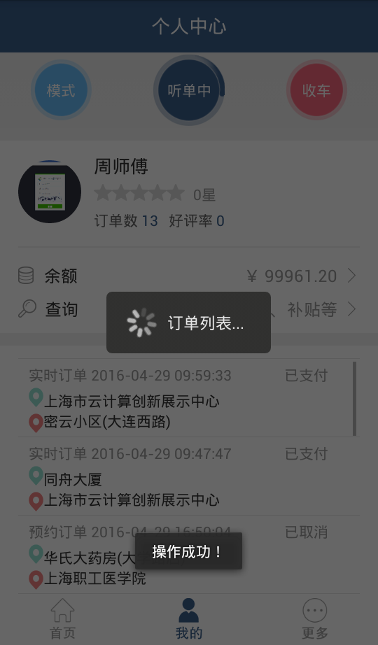 7、主界面可以查看您的订单列表,显示您实时的流水