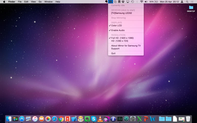 在这里,我们扫描你的家庭网络连接的三星智能电视。当一个电视台在同一网络中找到你的Mac,它的上市将在这里。启动镜像,从列表中选择电视。