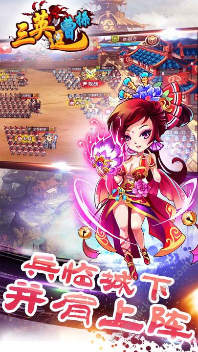 《三英逗曹操》是一款以曹操败走华容道为切入点的三国题材大型Q版即时策略卡牌游戏。全球首创的多战线作战模式,宏大的千人战场,新颖华丽的必杀技能,气势恢宏的国战战场。在这里,几百名耳熟能详的三国名将任您招募;宝刀名马无数奇珍异宝等您来拿;后宫佳丽三千任君采撷;兵种阵形随您搭配;攻城掠地驰骋天下,文臣武将助你成就霸业。【游戏特色】