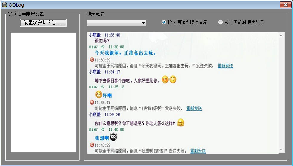 采用对QQ消息数据库文件直接读取的方式记录,可记录安装本软件之前之后的聊天记录