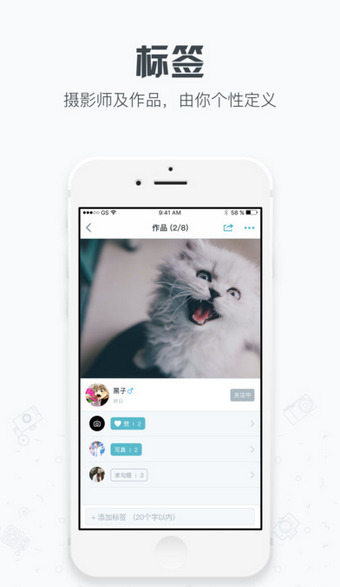 同时,提供摄影师个人作品库的建立和推荐、同好者社交以及影展、组织线下拍摄等活动。
