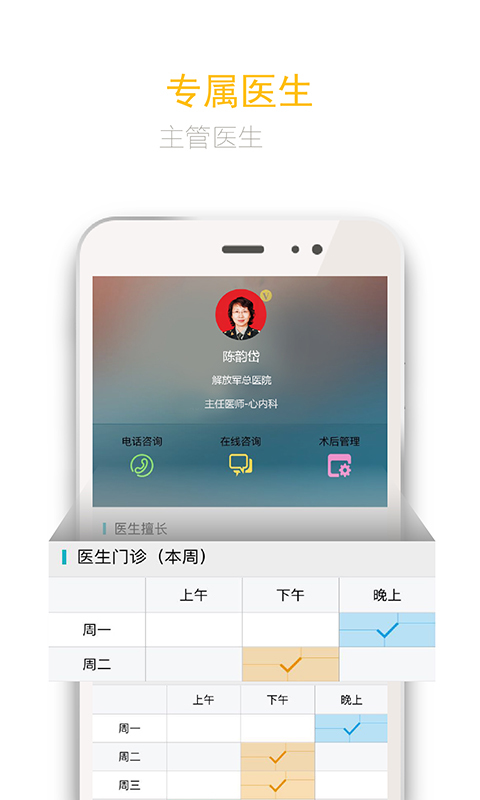 1、用户可通过【在线咨询】以及【电话咨询】向所属医生进行咨询2、用户可通过健康模块实时对健康进行监控